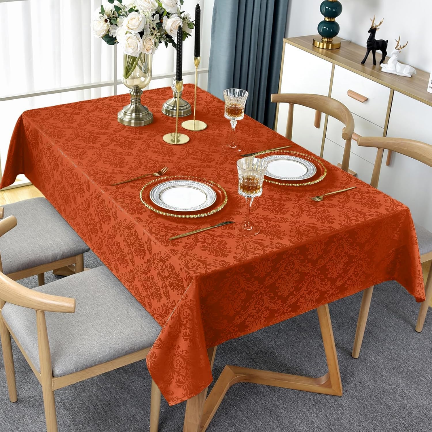 - 【Wrinkle and Spill-proof Material】: This waterproof burnt orange tablecloth is made of 100% premium polyester fabric to ensure the protection of your table and furniture.our rectangle tablecloth smooth, soft, supple, spill-proof and wrinkle resistant, ensuring a crisp and inviting table setting.