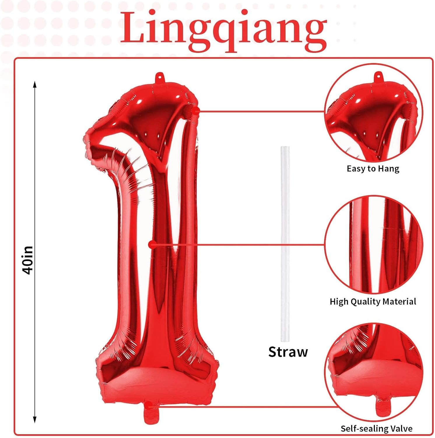 - π Red Number 1 Balloon π - You will get 1pc 40 inch mylar foil number 1 balloon and 1pc straw. Perfect for 1st 10th 12th 13th 15th 16th 17th 18th 21st birthday or anniversary party decorations supplies.