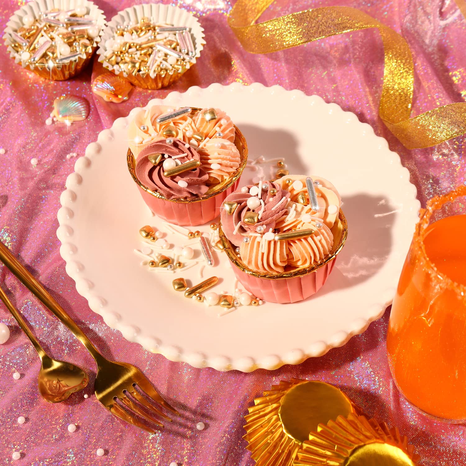 - SPARKLING SPRINKLE MIX - Sprinkles are available in gold, silver, white and consist of various shapes sizes of sprinkles! These sprinkles are perfect for wedding cakes or bridal party desserts. It contains gold and silver sugar pearls and sugar rods, white confetti, jimmies, nonpareils. Sprinkles them on cakes and desserts to create a luxurious and cheerful party atmosphere.