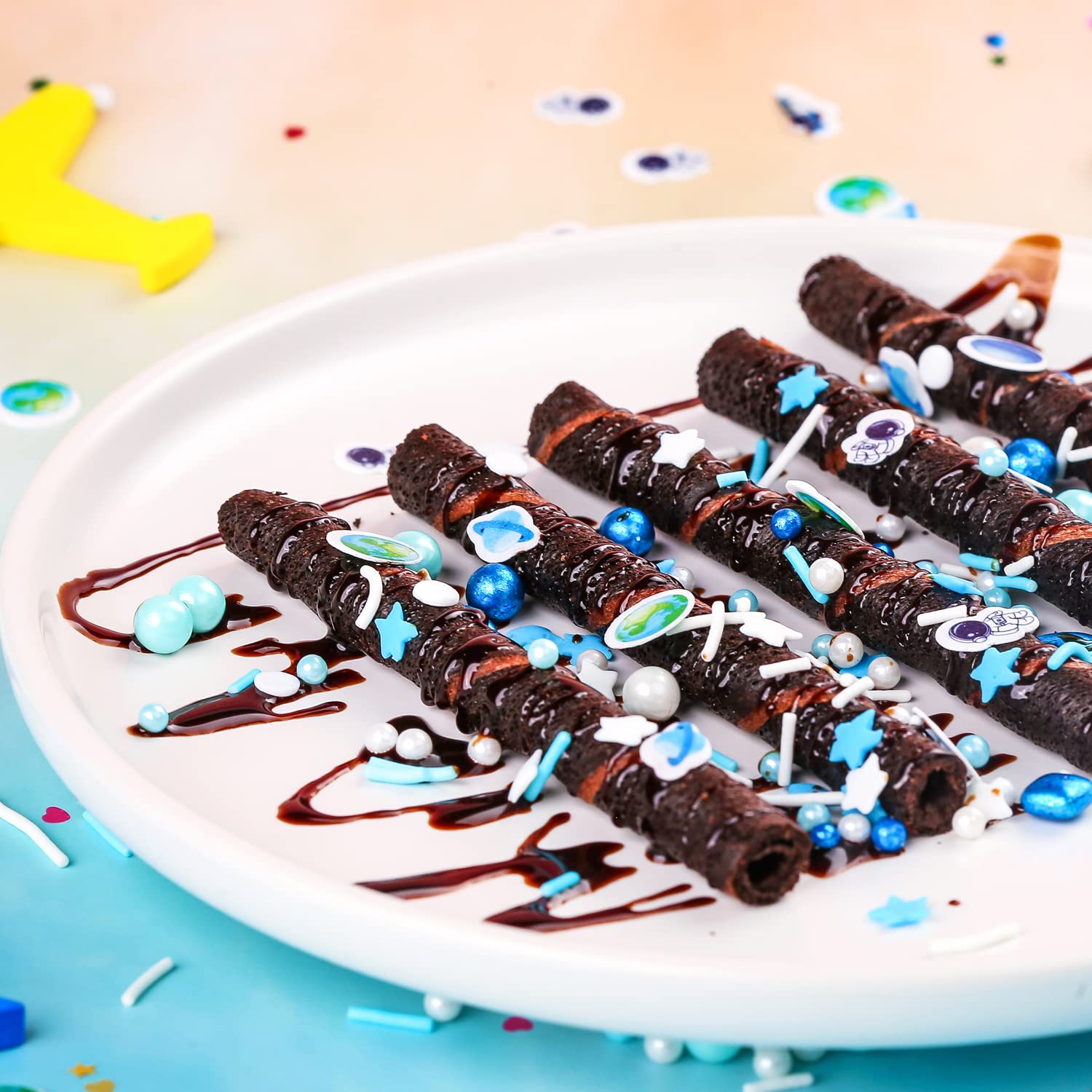 - COSMIC GALAXY SPRINKLES MIX - Inspired by the glow of the milky way and the immensities of the universe, our cosmic galaxy sprinkles is a uniquely themed concoction consisting of bright blue, sky blue sugar beads, confetti paper, sugar bars, star candy (cosmic theme).