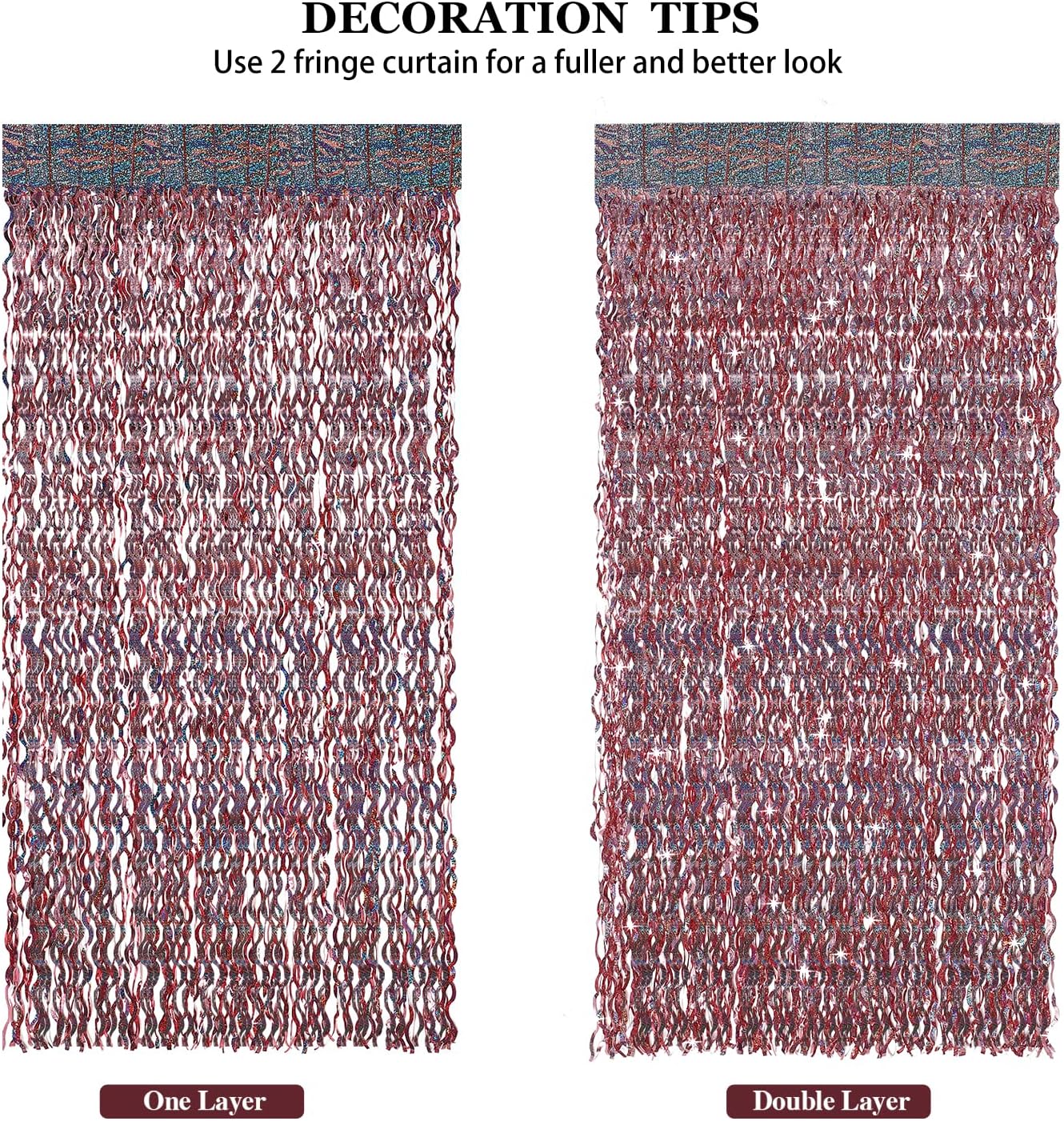 - TIPS: 1 You also can use your own tapes to make the fringe stick sturdy 2 You can cut the tinsel by scissors into the suitable length and width for your party use three pcs of the curtains side by side to make the backdrop larger, or layer the 2 pack curtains to achieve a thicker and denser effect
