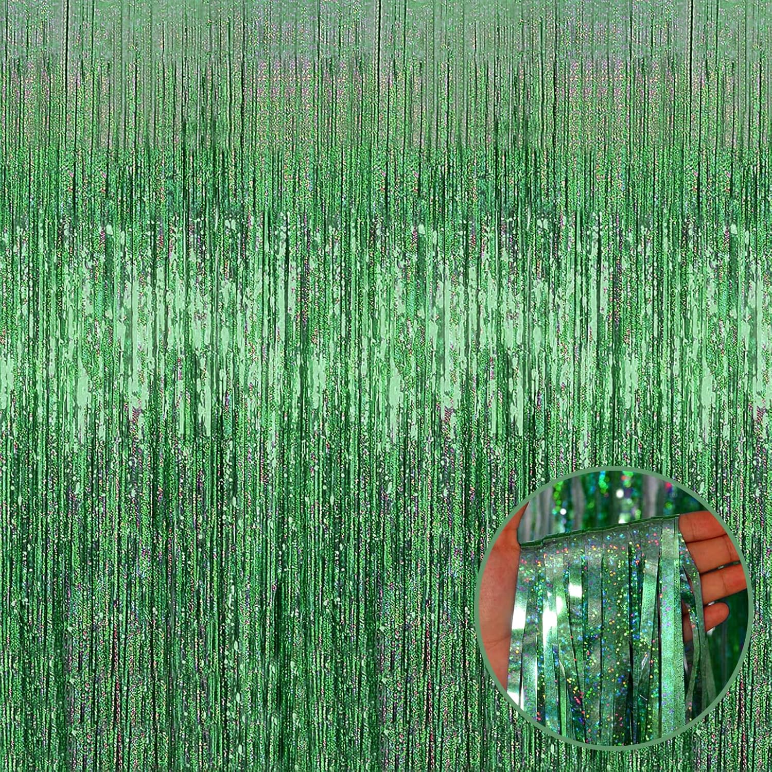 4 Pack Light Green Tinsel Foil Fringe Curtain Backdrop, 3.28Ft x 8.2Ft Metallic Streamers for Photo Booth Props Wedding Bridal Shower Bachelorette Birthday Halloween Christmas Party Decoration