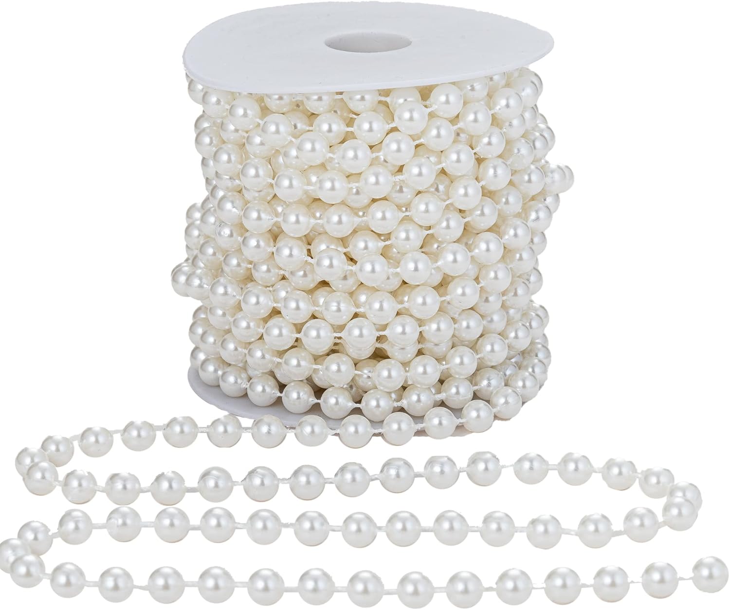 8mm Crafts Faux Pearl Beads Garland Pearl Bead Roll Strand of Pearls to Decorate Floral Centerpieces Wedding Party Favor Christmas Tree(33 Feet Ivory)