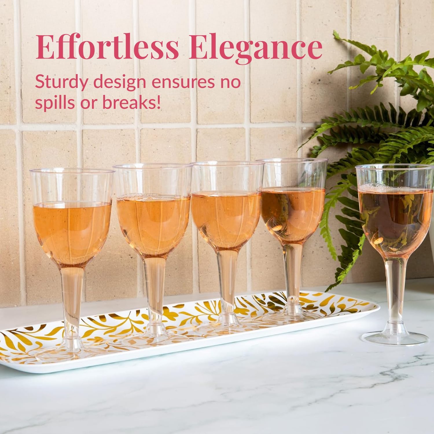- PARTY WINE GLASSES: Make your celebrations memorable with these plastic wine cups Perfect disposable wine glasses for wedding, picnics, patio gatherings, baby showers, bachelerotte parties, barbeques, family reunions, and everyday use An awesome option if you are looking for plastic wine glasses with stem.