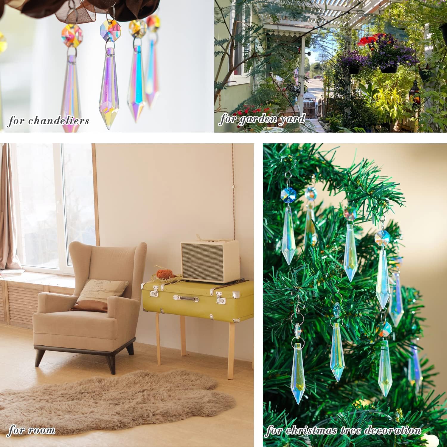 - Where the sunlight could hit it. Multi function crystal suncatcher: For home/office/garden window; Feng Shui crystals; Chandelier crystal parts; Wedding/party decoration; Christmas tree decor, rear view mirror charm or any crystal projects