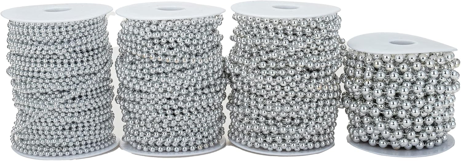6mm Crafts Faux Pearl Beads Garland Pearl Bead Roll Strand of Pearls to Decorate Floral Centerpieces Wedding Party Favor Christmas Tree(82Feet Silver)