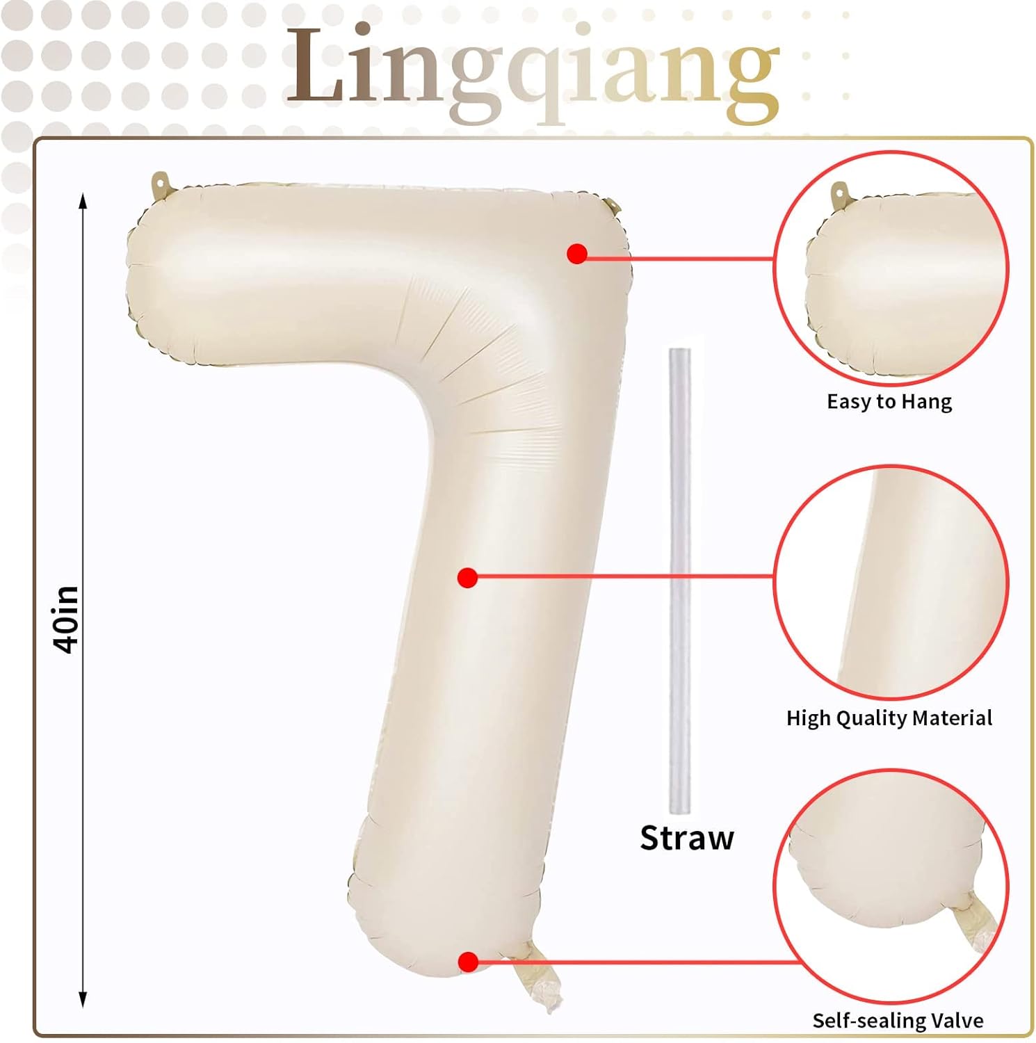 - π Beige Number 7 Balloon π - You will get 1pc 40 inch mylar foil number 7 balloon and 1pc straw. Perfect for 7th 17th 27th 70th 75th birthday or anniversary party decorations supplies.