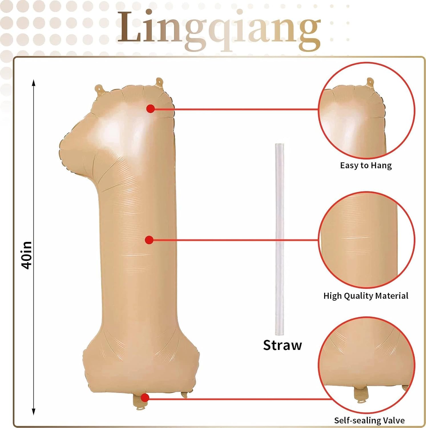 - π Easy to Inflate π - The big light brown number 1 foil balloons have self-sealing valve does not need to be knotted for easy inflation and deflation. It can be inflated with air or helium. When filled with helium, the balloons can float in the air; after filling, press the valve of the digital balloon to seal it. It can be reused. Do not throw away after use!