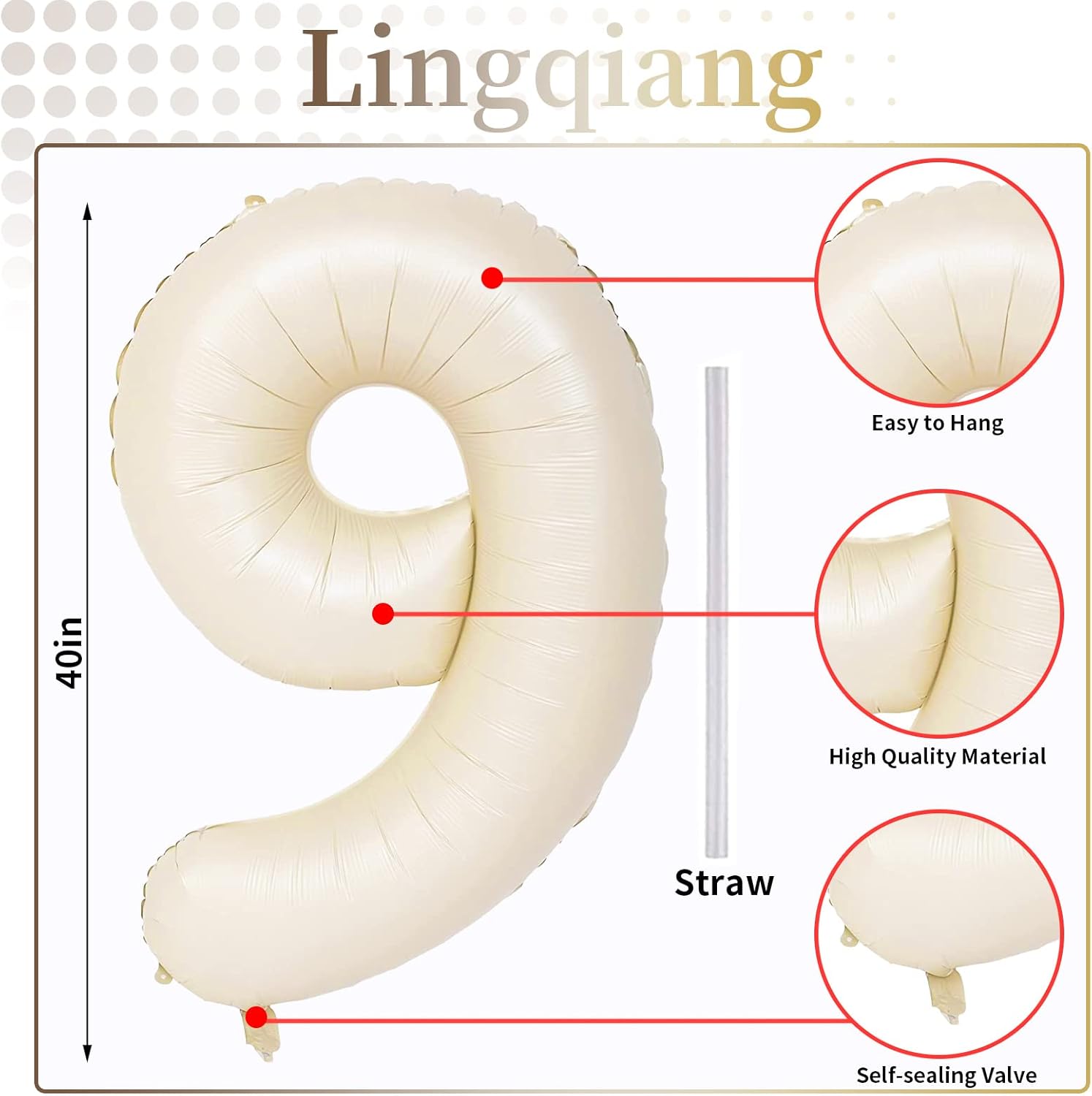 - π Beige Number 9 Balloon π - You will get 1pc 40 inch mylar foil number 9 balloon and 1pc straw. Perfect for 9th 19th 90th birthday or anniversary party decorations supplies.