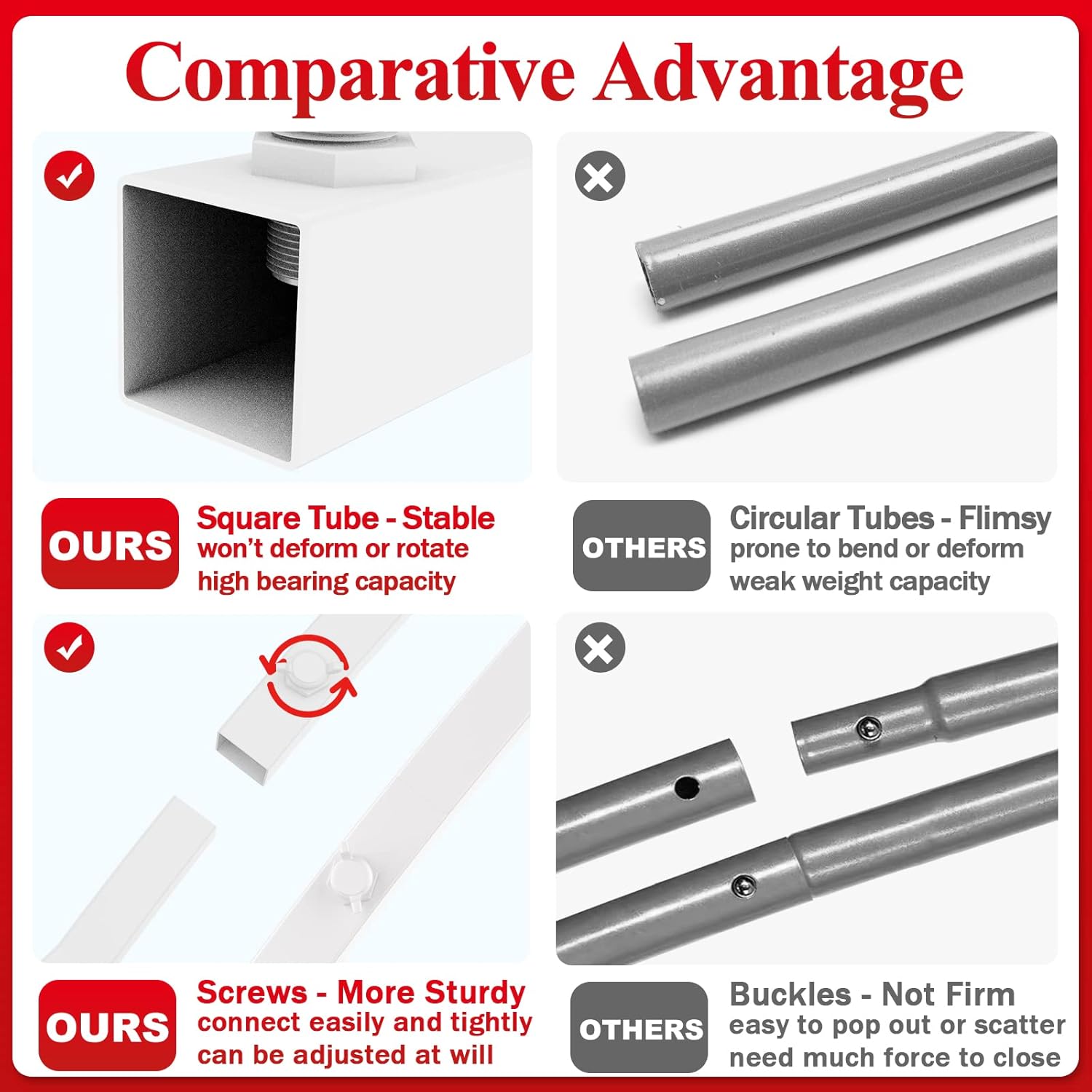 - 【Easy Assembly and Disassembly】With the upgraded square tube design, you can install it more easily. One person can easily do it in a few minutes. We also provide installation manual and installation video for your reference.