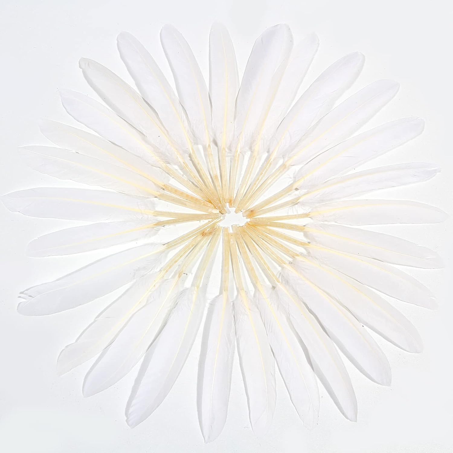 - 🦢Product Specifications:length:4-6inch,10-15cm long.120pcs/bag. Goose Feathers are soft to touch in hand. Because all feathers are purely natural, there may be slight deviations in size, length, and shape.