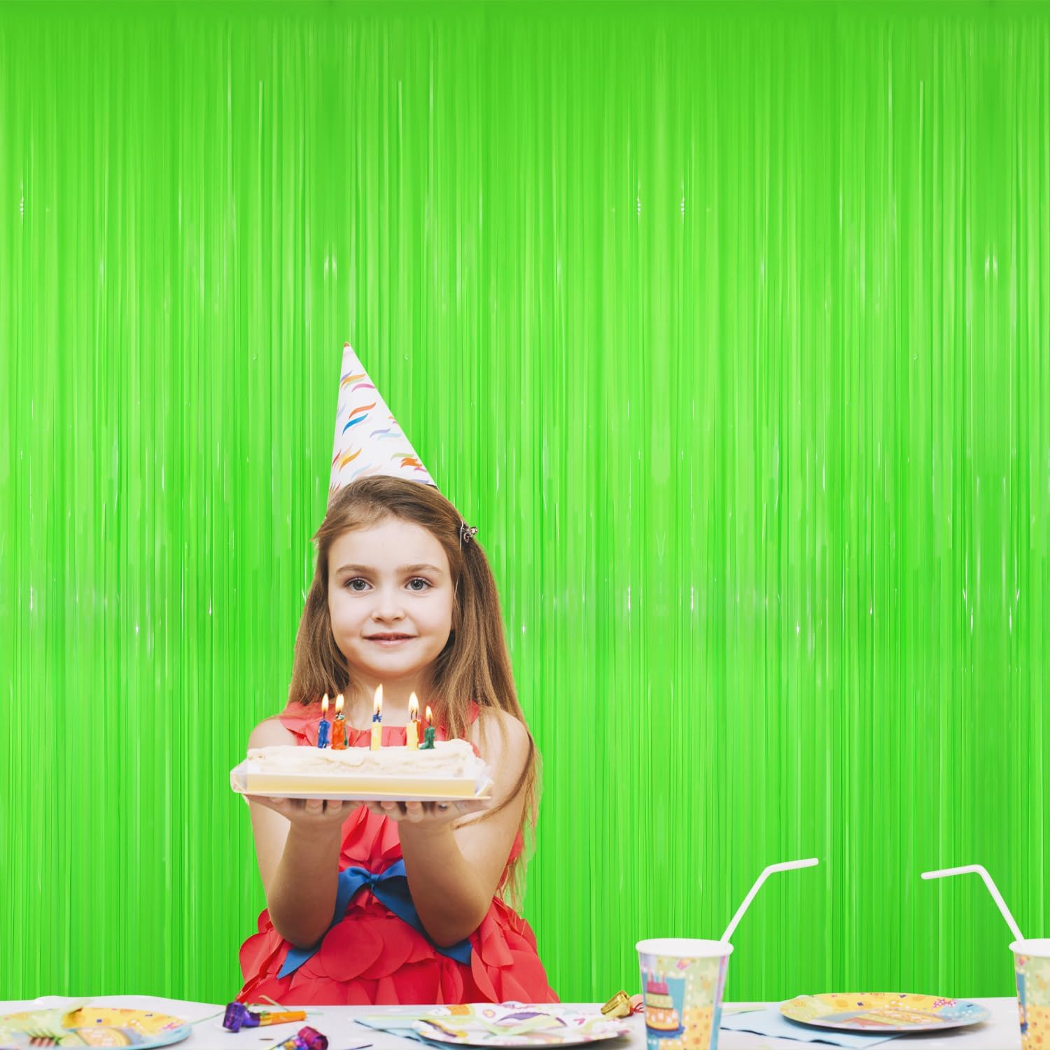 - Package Includes:5 Pack Candy Lime Green Foil Fringe Curtains