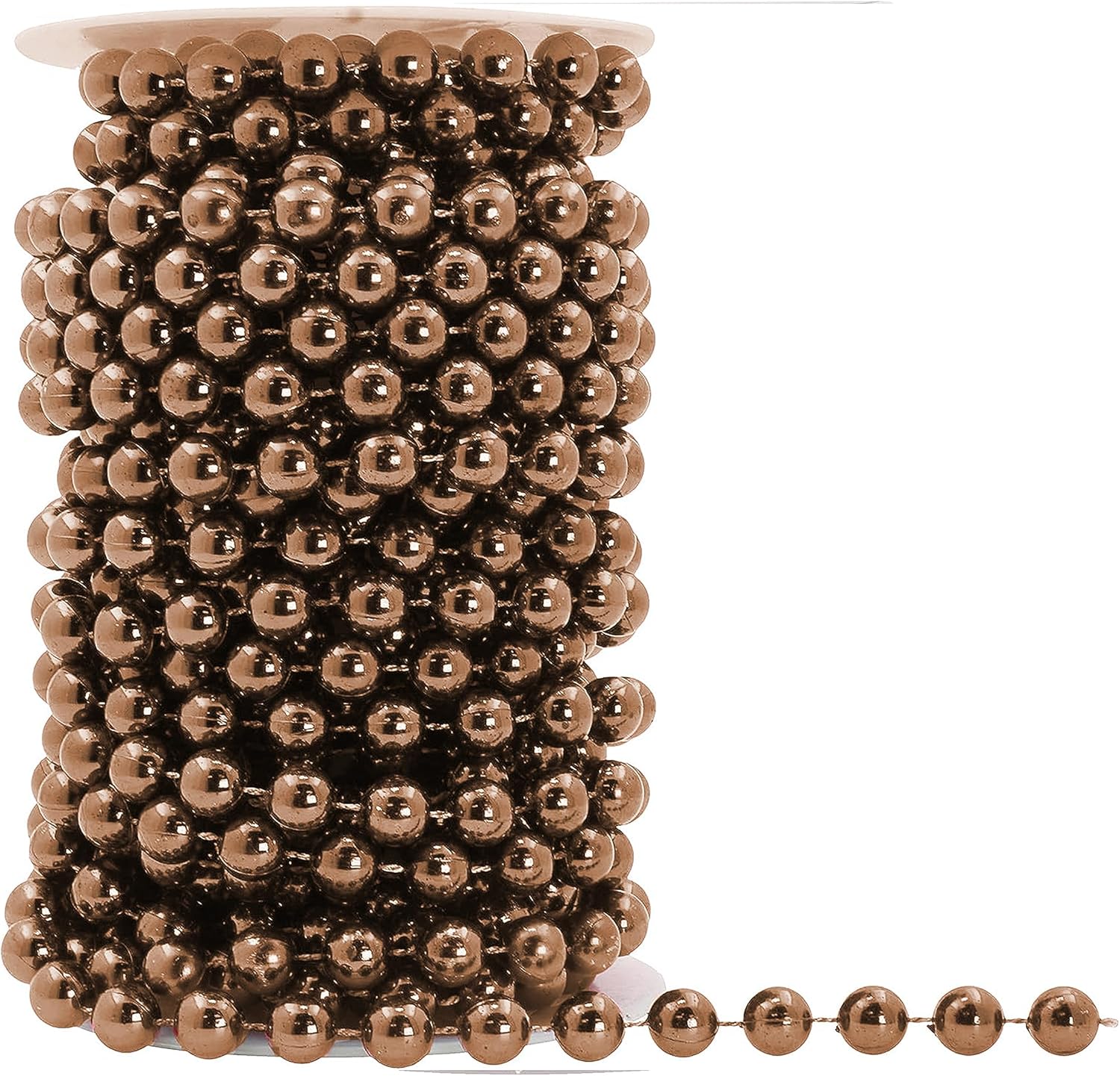 Mandala Crafts 10mm Faux Brown Pearl Beads Roll - 11 Yards Strand of Fake Pearls Chain Garlands Spool String for Christmas Tree, Wedding, Party, Vases, DIY Decoration