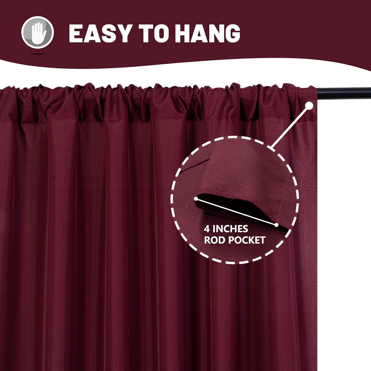 - For Kinds Of Occasions: Our polyester drapes are perfect for kinds of occassions. Such as wedding party, baby showers, birthday parties, photo booth,anniversary,graduation, home decoration and more