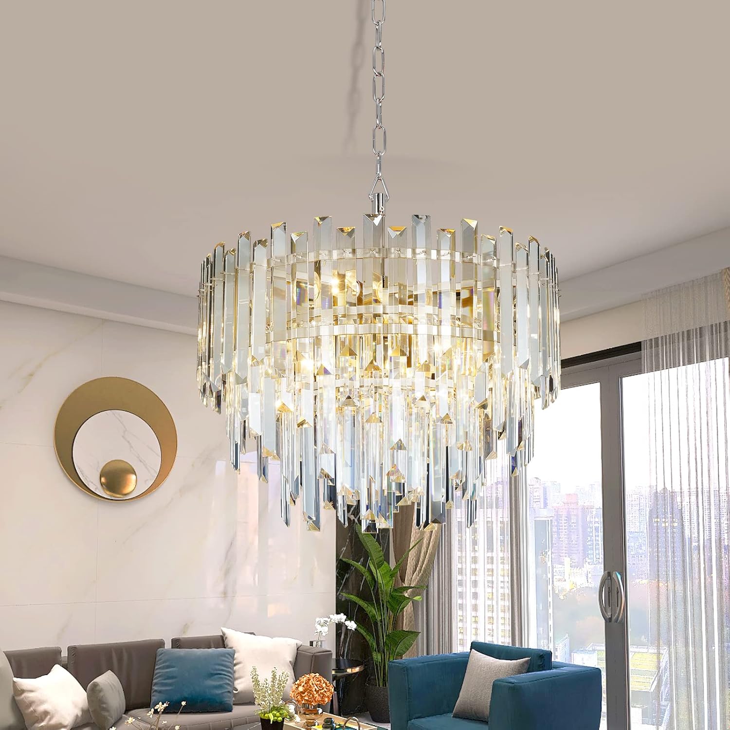 Chrome Crystal Chandelier Lighting 17.7'' for Dining Rooms Bedroom Foyer Entryway Ceiling Hanging Pendant Chandelier Light Fixture Lamp