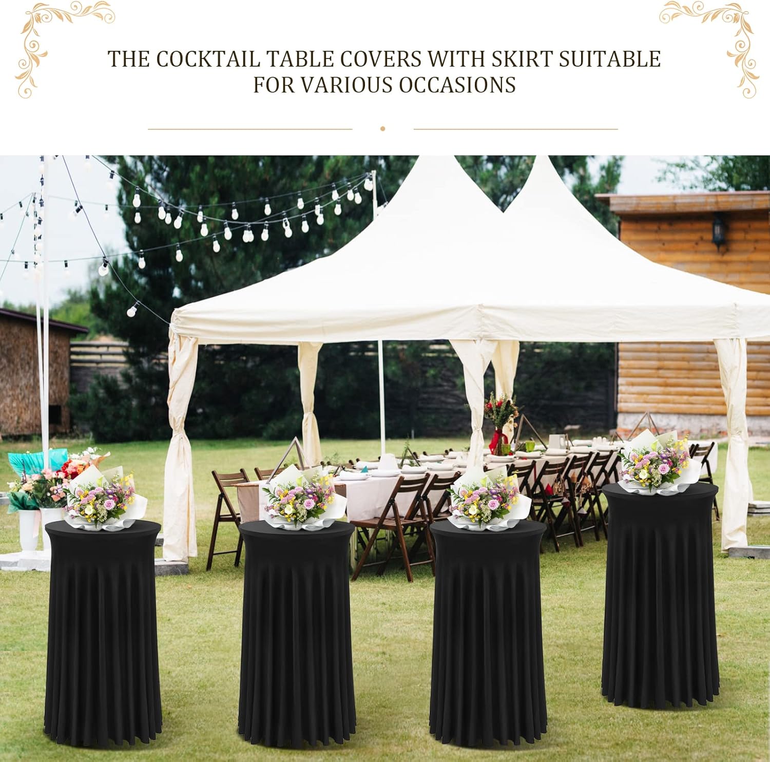 - Skirt Design - These are uniquely designed cocktail table covers that fit any tall round table with a diameter of approximately 24 inches and a height of approximately 43 inches, whether the bottom is an X style or a single center column
