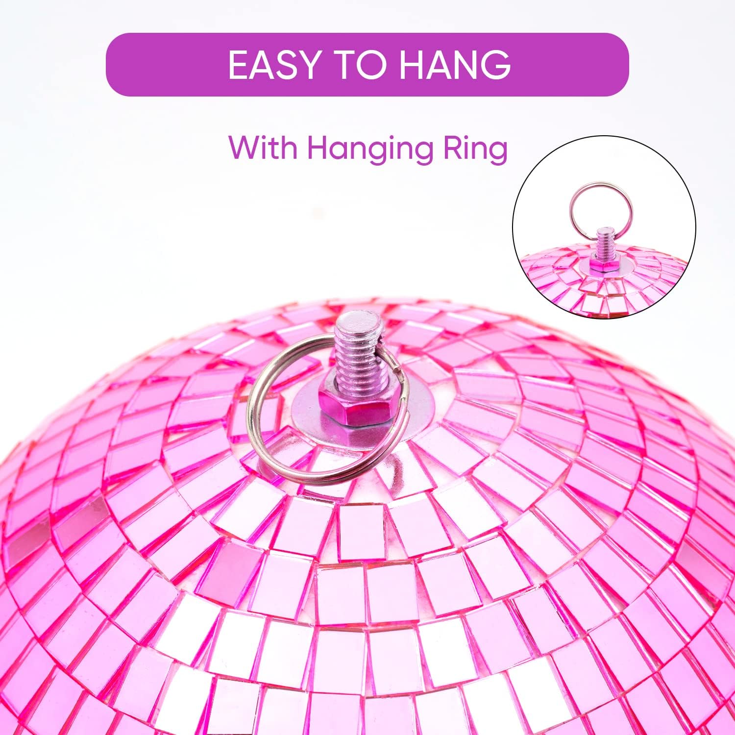 - Premium Pink Mirror Ball: This shimmery mirror ball is well-constructed with foam inner ball covered; When light is directed at mirror ball, each facet reflects light back into the air, casting it into dozens of small beams that stream out in all directions; The disco ball can create a unique, magical effect; The large disco ball have mirrored surfaces that refracts sunlight to fill the room with a warm glow , ideal for school dances, weddings and other big parties