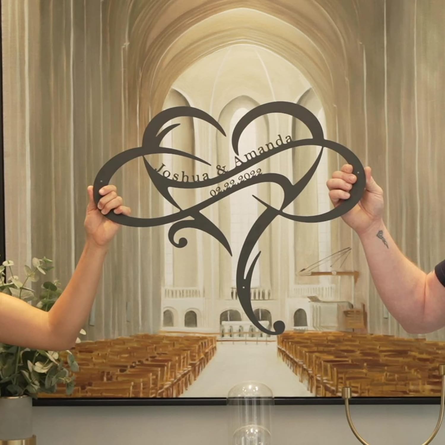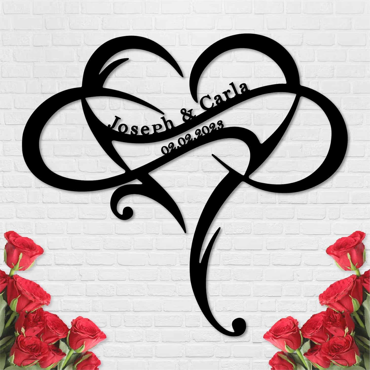 - Personalized Heart Design: Celebrate love with a customizable metal sign featuring intertwined names and a heart-shaped motif, perfect for showcasing special relationships.
