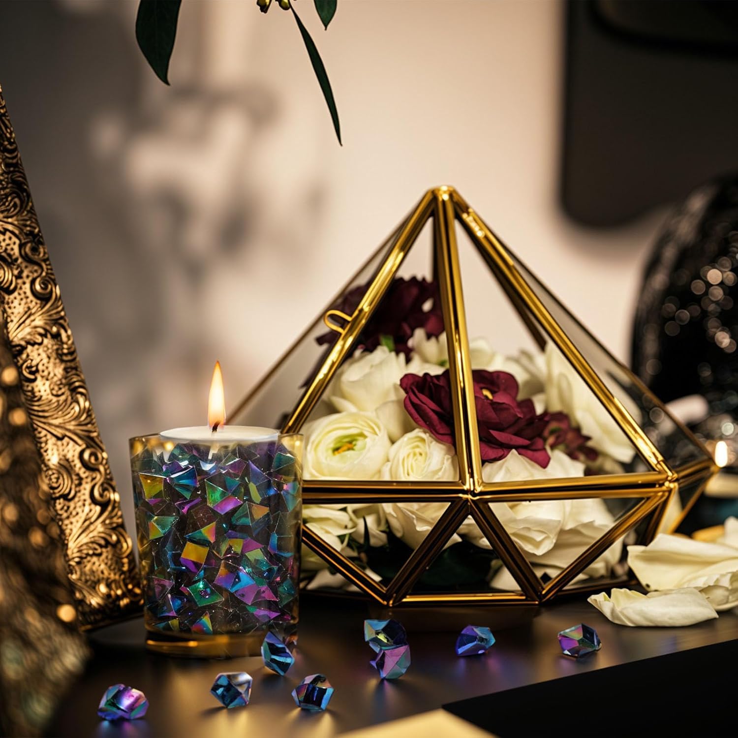 - Super Value Pack - You will get 150PCS holographic and dazzling ice rocks with the metallic texture (each is about 0.6"-1"), enough for filling up a regular vase. Our new developed acrylic ice rocks would be a hit around your neighbors.