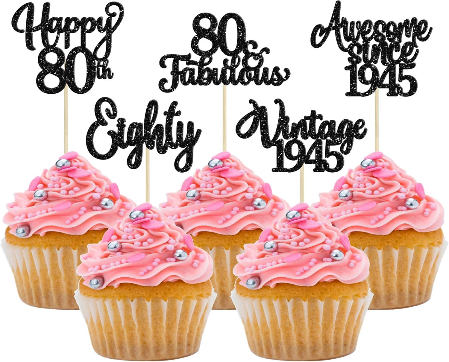 - 💖【No Assembly Required】: 30Pcs 80th Birthday Cupcake Toppers can put in the cake directly! These 80th Birthday Cupcake Toppers save your time and super easy to use. You can easily dress up your cat theme cakes, yes! but don't stop there, put them into desserts, cookies, fruit pieces, appetizers, muffins and so much more!