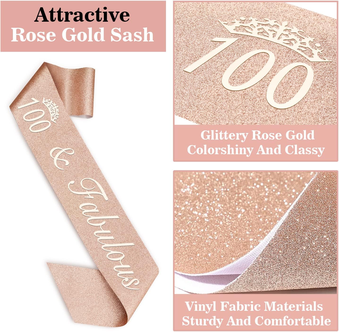 - [100 Birthday Sash for Women]: Our 100th birthday sash is made of high quality glitter satin with foil lettering. The sash is in 63 inch length and comes with a gold charm pin that you can easily adjust the length you need.