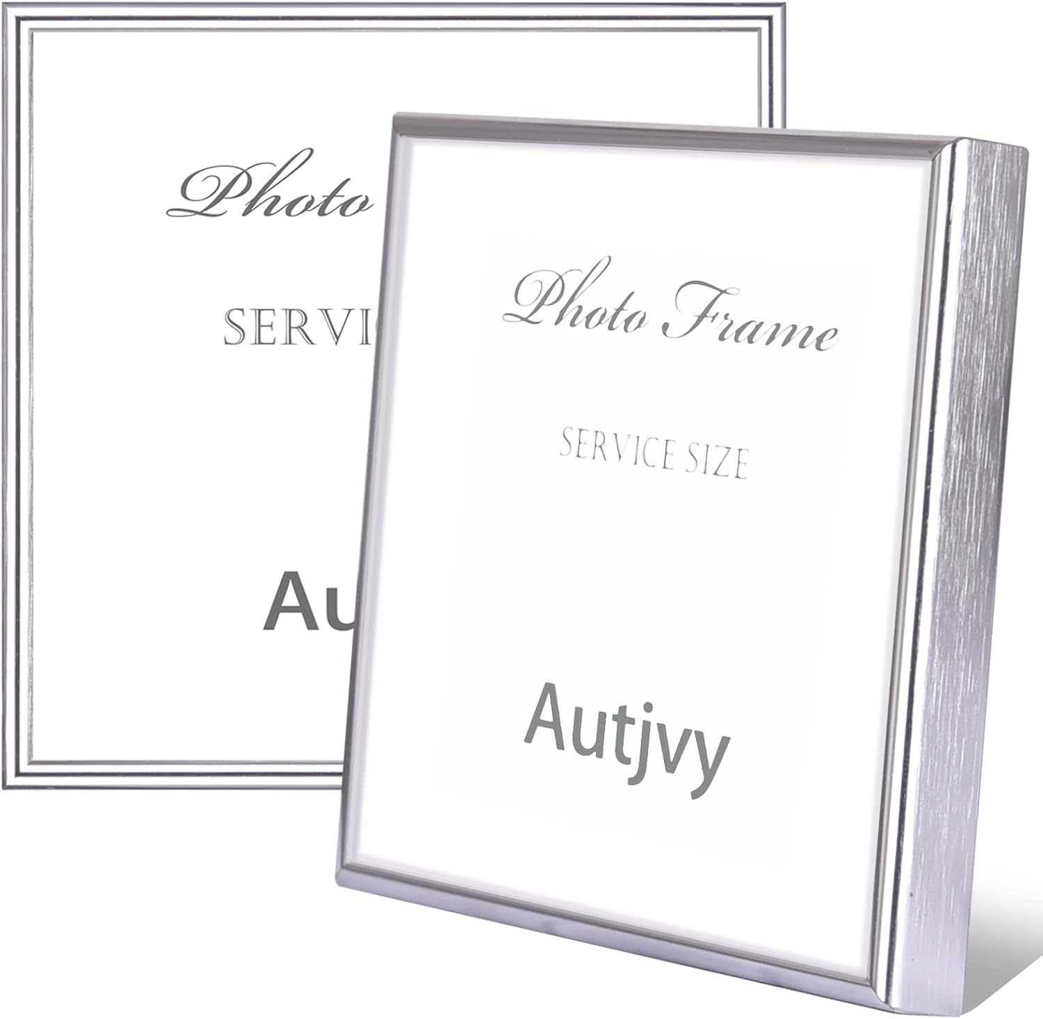 5x5 Picture Frame Silver Brushed Modern Simple Thin Aluminum Metal Photo Frame with HD Real Glass, Display for Tabletop and Wall Collage. (2 Pack)
