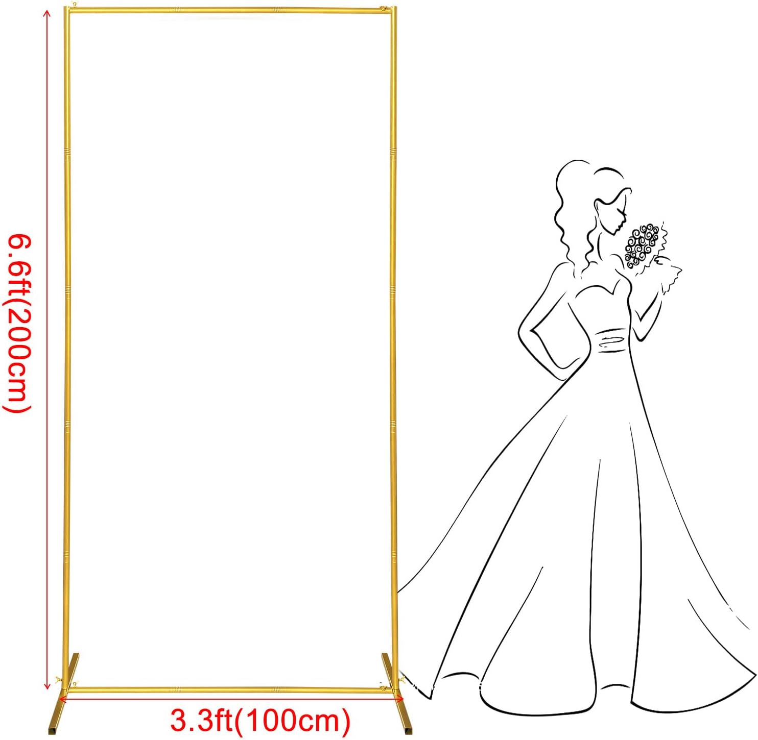 Metal Wedding Arch Backdrop Stand 6.6x3.3 FT Gold Square Balloon Arch Frame for Wedding, Birthday Party, Baby Shower Ceremony Decoration