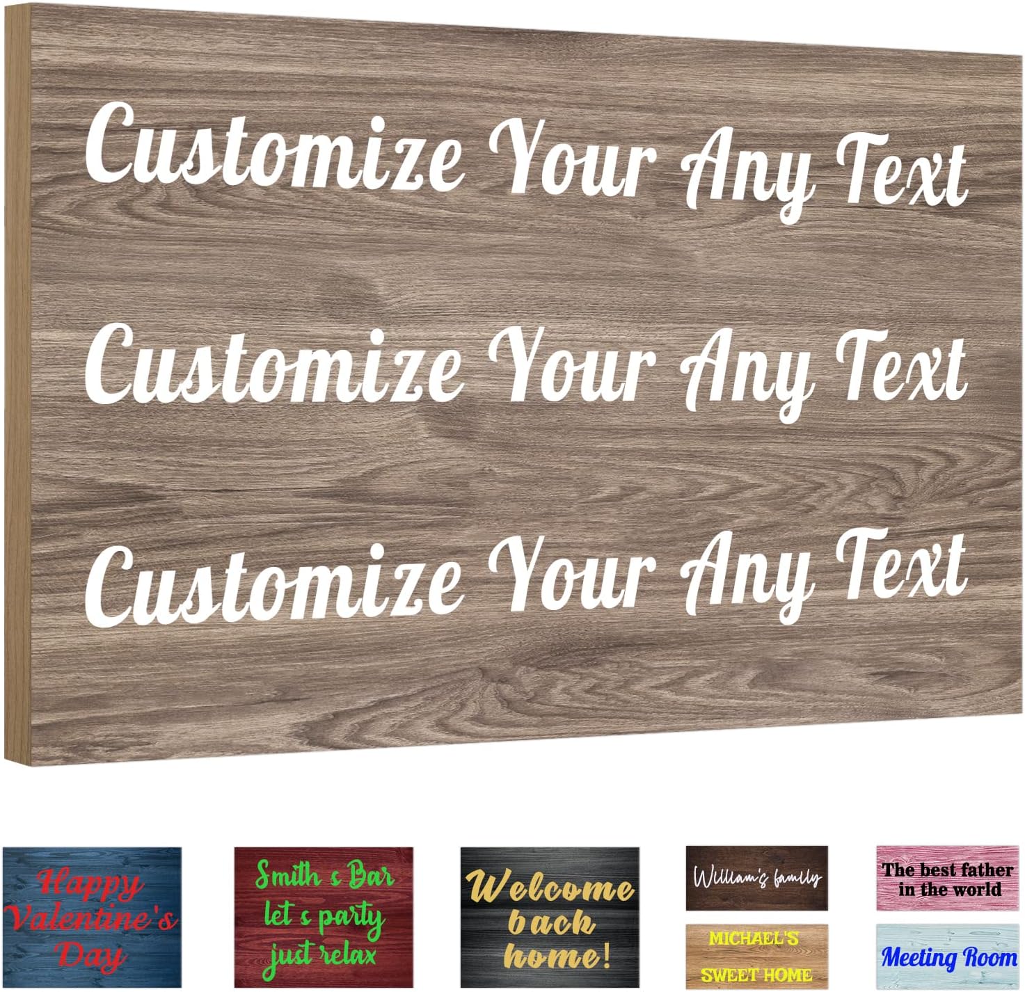 Custom Sign Personalized Wooden Signs for Home Customized Decorative Sign with Text for Wall Doors Bar Business Office Yard - 4 Size & 12 Board Colors Options