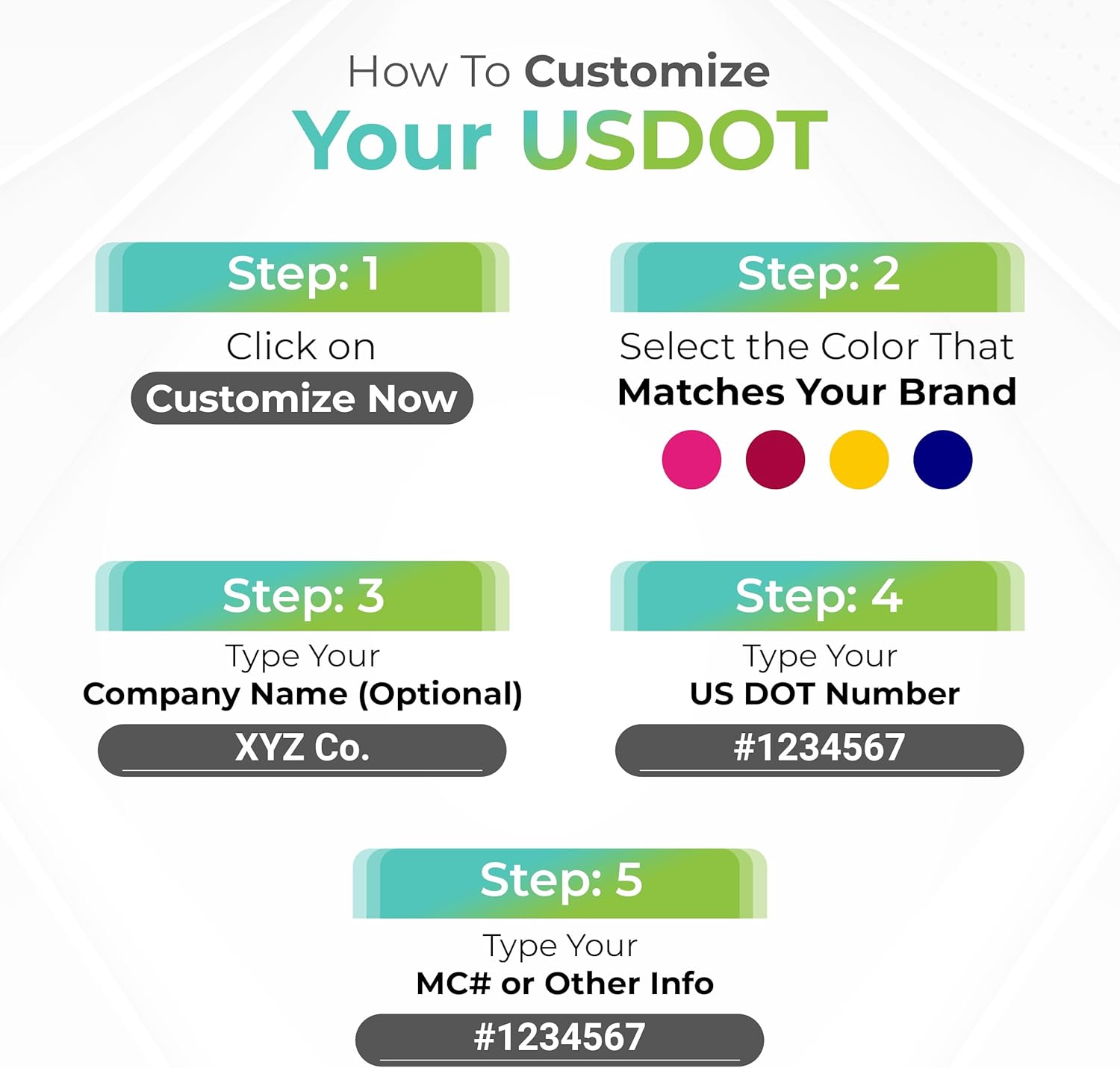 Custom USDOT Truck Decal, MC, Company Name & Registration Stickers, Vinyl Lettering Sticker for Auto Car Window, Vehicles, Doors, Trailer, Personalized, Trucking Letter Decals, Compliant 2" High