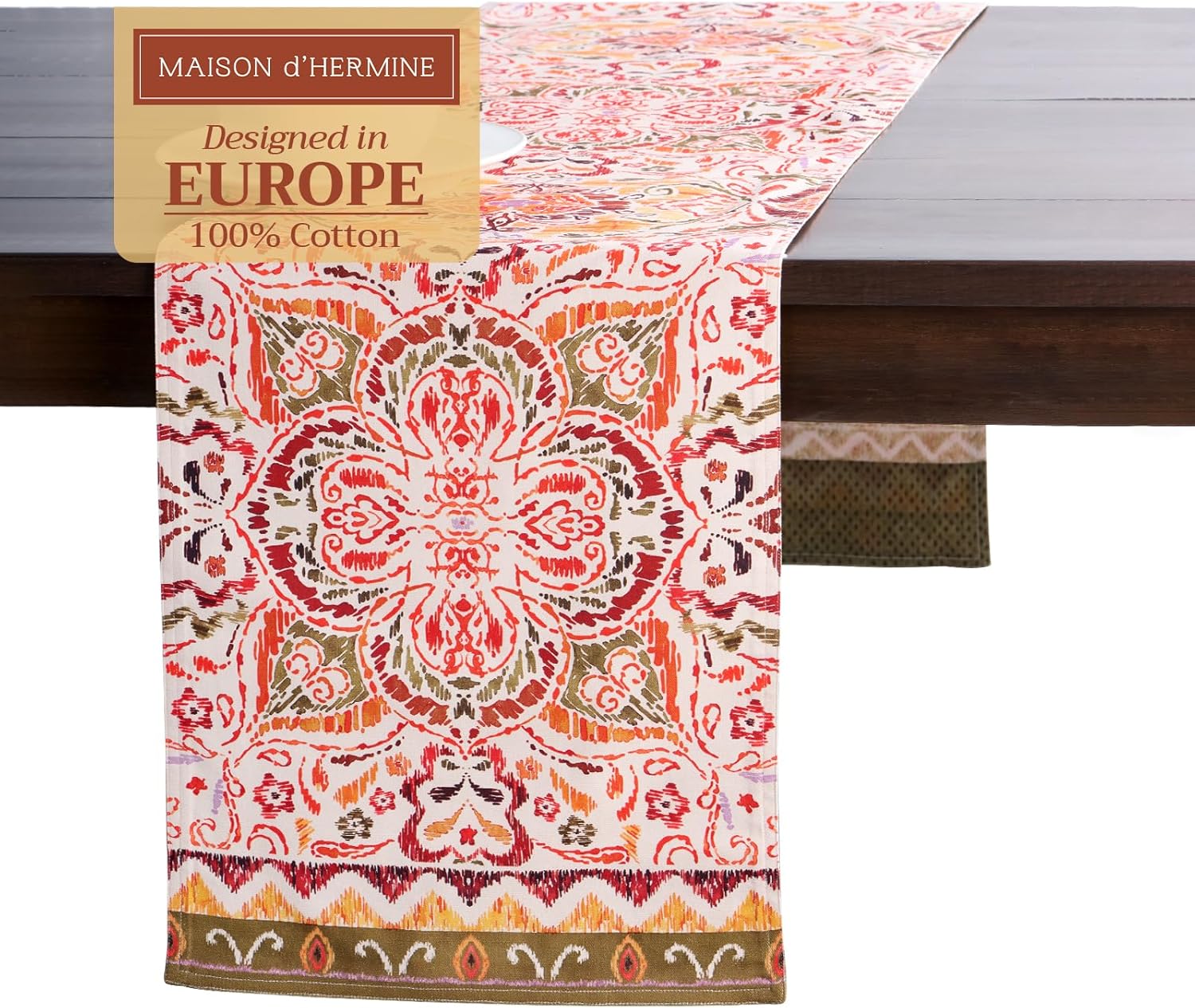 Maison d' Hermine Table Runner 100% Cotton Double Layer Table Runners 108 inches Long for Thanksgiving Christmas Decorations Home Kitchen Dining Party Wedding (Damask, 14.5" x 108")