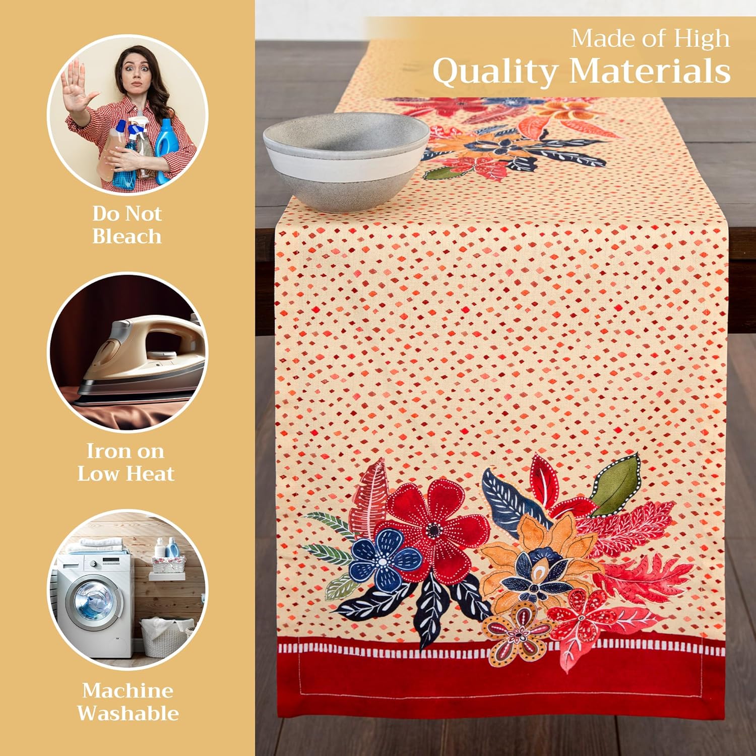 - Enhance Your Home: Crafted from 100% cotton, this reusable table runner adds a warm, seasonal touch to your dining decor. Ideal for Thanksgiving, Halloween decorations, or Christmas decorations—pair it with matching linens for an elegant fall or holiday gift