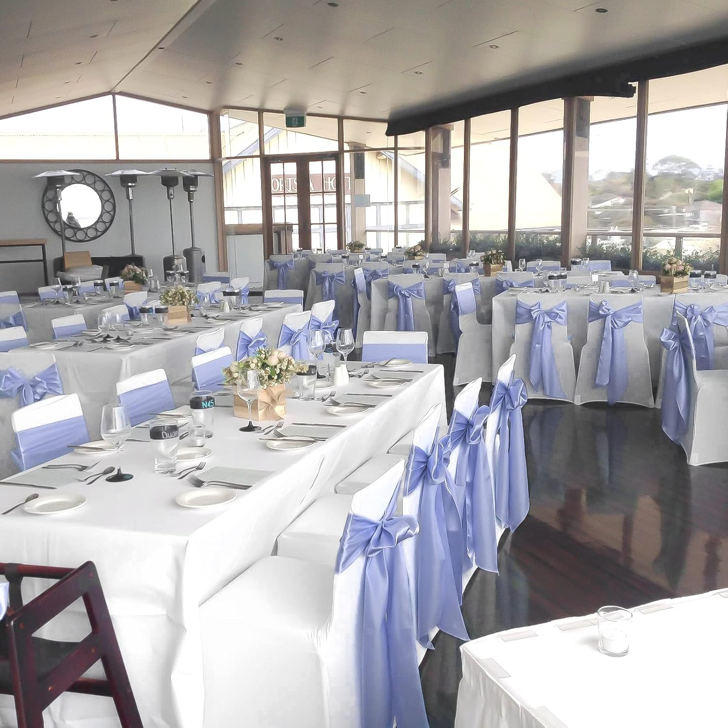 - š®ćApplicable OccasionsćOur chair ribbon sashes are perfect for wedding, engagement event, party, banquet, birthday, baby shower, Christmas, Thanksgiving, graduation and Other Celebration Occasion. Fits wedding reception, banquet, party, Birthday celebrate, baby shower, graduation ceremony, theme event decoration.