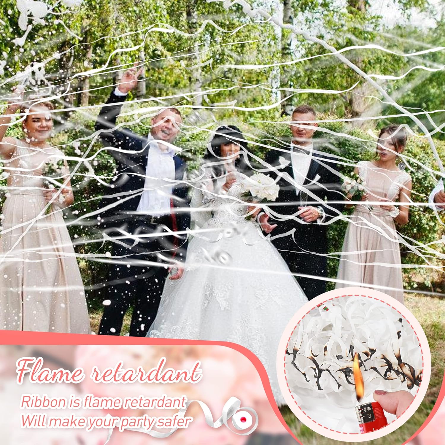 - 48 Pack/30 Ribbons/17 FT:Contains 48Pack white confetti poppers.Each party poppers ribbons with a total of 30 thin ribbons,the length can reach 17 FT, invite guests to throw ribbons together!Perfect for creating a wedding outlet