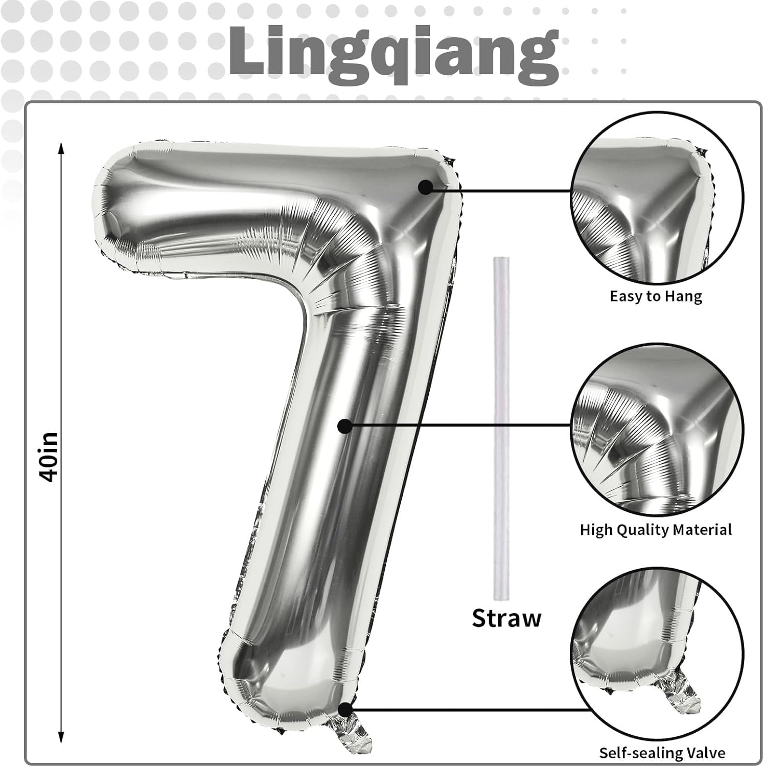 - π Silver Number 7 Balloon π - You will get 1pc 40 inch mylar foil number 7 balloon and 1pc straw. Perfect for 7th 17th 27th 70th 75th birthday or anniversary party decorations supplies.