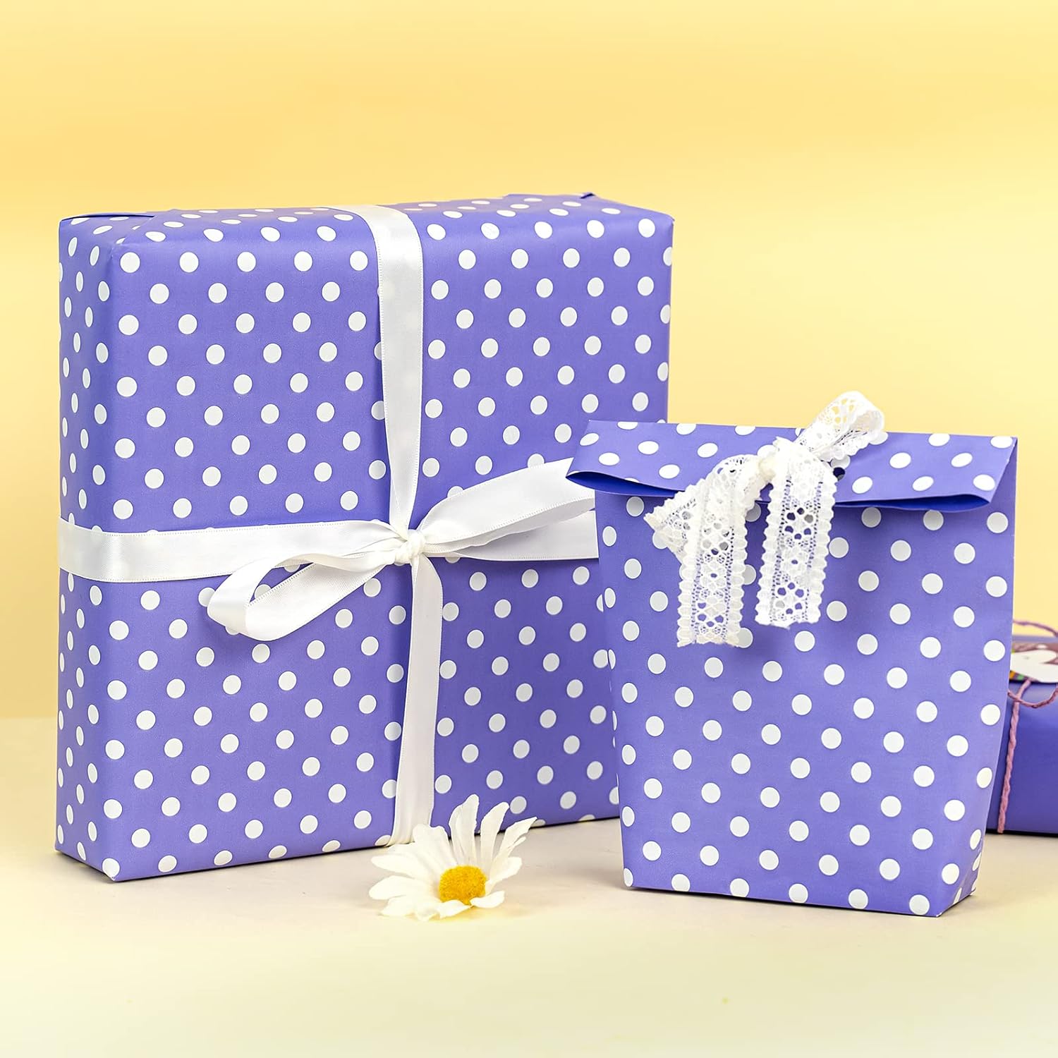 - REVERSIBLE: A solid light purple side and a light purple/white polka dot side. Two different classic designs make beautiful and varied gift presentations easy.