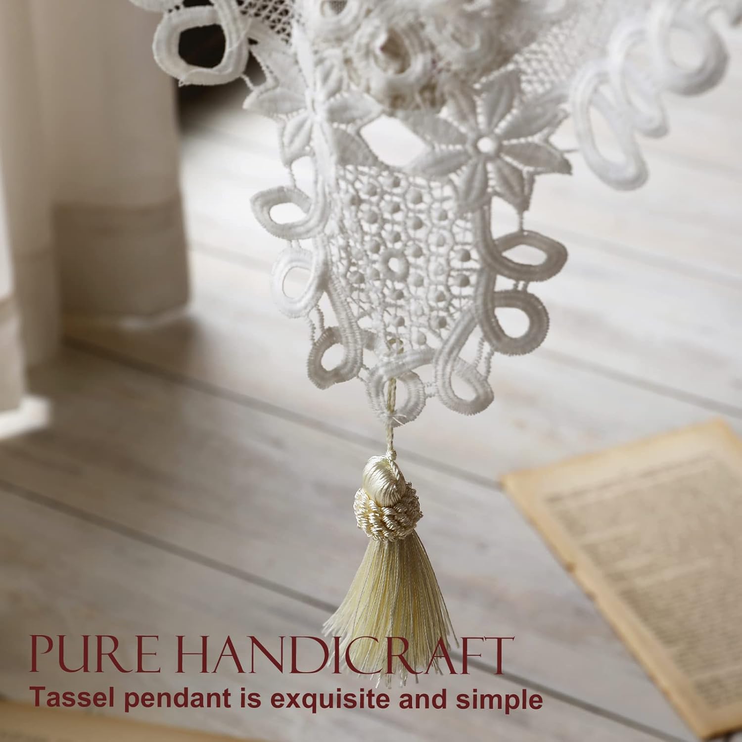 patdrea Designer Vintage White Lace Table Runner,Crochet Decorative Table Covers,Chiffon Embroidered Tasseled Table Runners, Cutwork Dresser Runners,Christmas Wedding Party Bridal 16x102 Inches Long