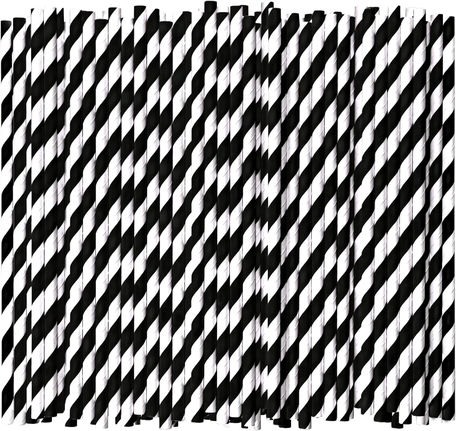 7.75'' Disposable Paper Drinking Straws Bulk, Black and White Striped - Unwrapped, Pack of 1000