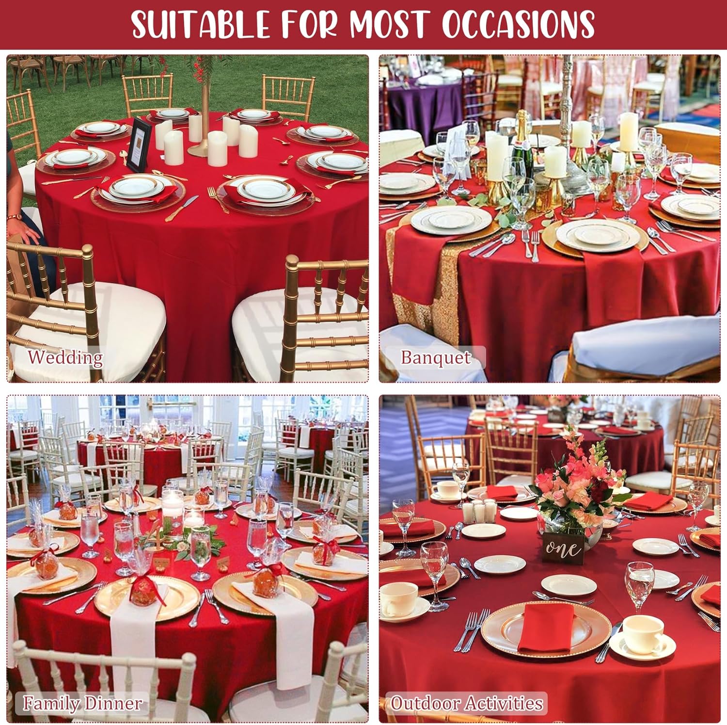 - Package Include: you will get 8 pieces red polyester round tablecloth, enough quantity is suitable for wedding banquets and various parties, the size of each tablecloth is approximately 108 inches / 274 cm, which is large enough to cover 48" to 72" round tables, classic in color and exquisite in design, the solid color makes them suitable for various occasions, instantly heightening the elegance of your table.