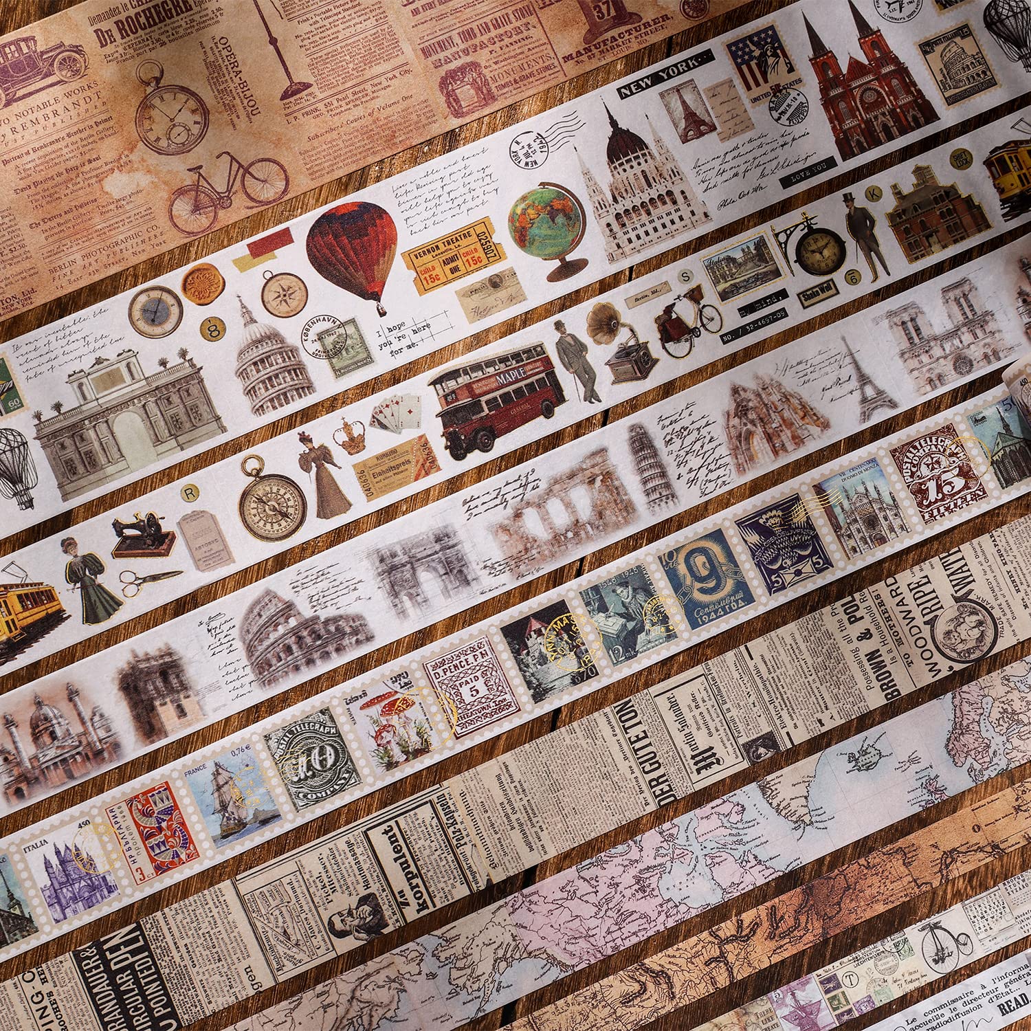 - This washi tape set comes with assorted vintage washi tape in various designs, their classic prints includeantique music sheets, handwritten script, world architecture, old newspaper articles, bicycles and electronic devices, retro buildings bike decals and more. which look very classic and vintage aesthetic washi tape kit, not easy to go out of date, bringing you enjoyment.