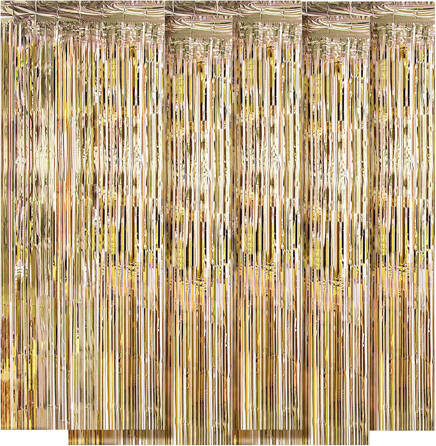 5 Pack Champagne Gold Fringe Curtains (3.2ft x 8.2ft) for Birthday, Wedding, Christmas Decoration