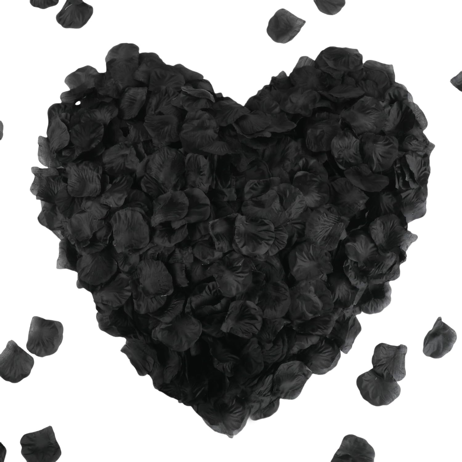 CODE FLORIST 1100 PCS Black Silk Rose Petals for Valentine's Day,Romantic Night,Wedding,Proposal Anniversary Flower Decorations(Separated,Scented)