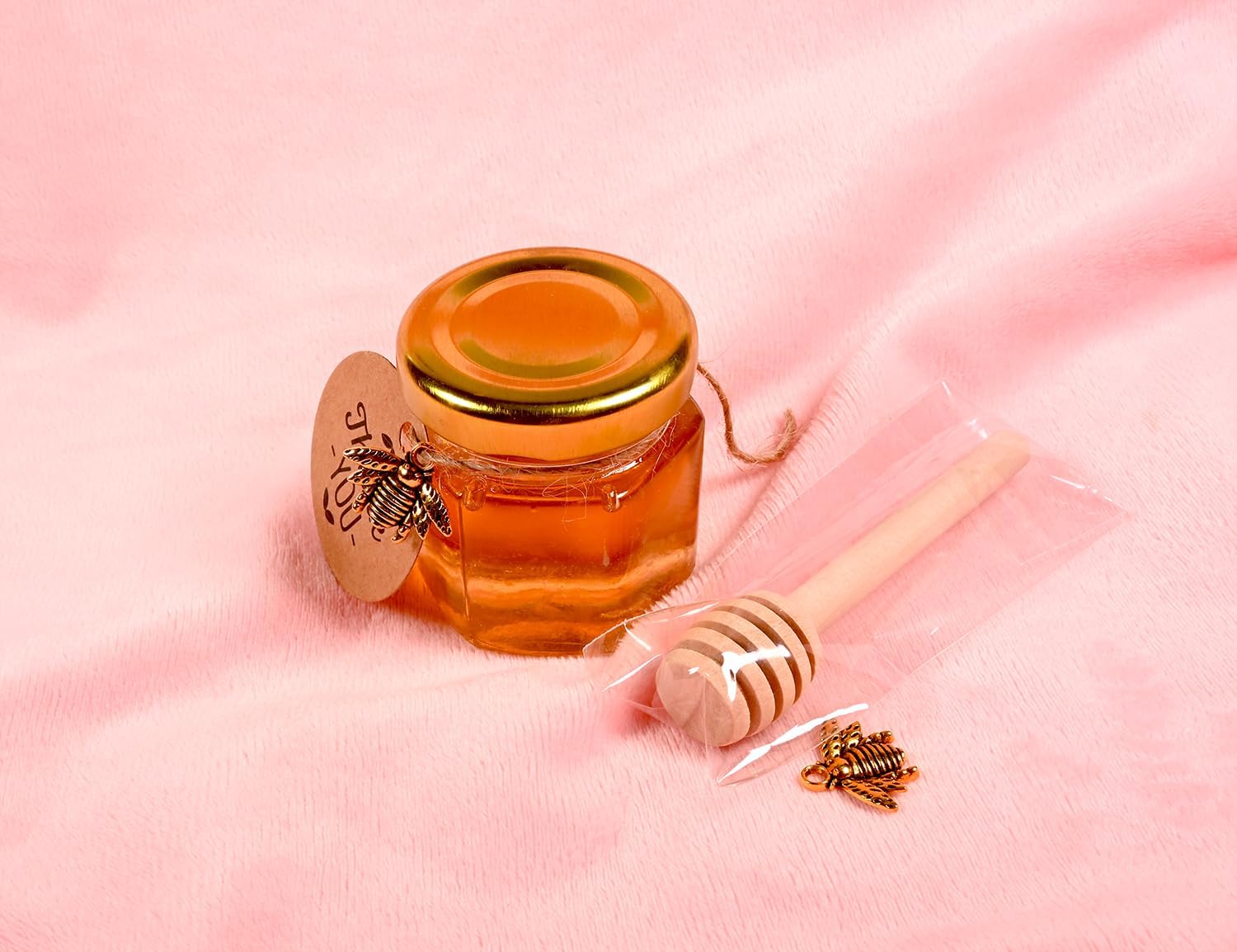 - Adorable Design: Each jar comes with a cute bee pendant and a honey dipper, adding a touch of charm to your baby shower or wedding favors. The included stickers can be used to personalize the lids, making them extra special