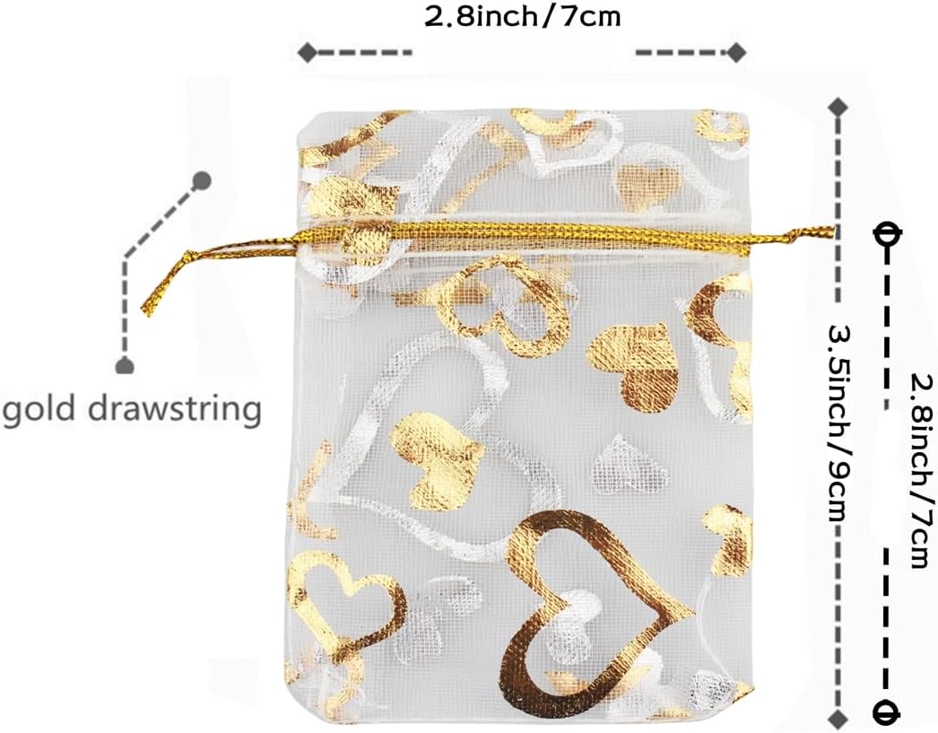 - PROPER SIZE&ENOUGHT QUANTITY: 2.8 x 3.5 inches=7 x 9 cm; Hand made and manual measurement with Β±0.2ββ error;Package includes 100 pieces of exquisite organza bags; The bags would come with a nice OPP bag for convenient storage.