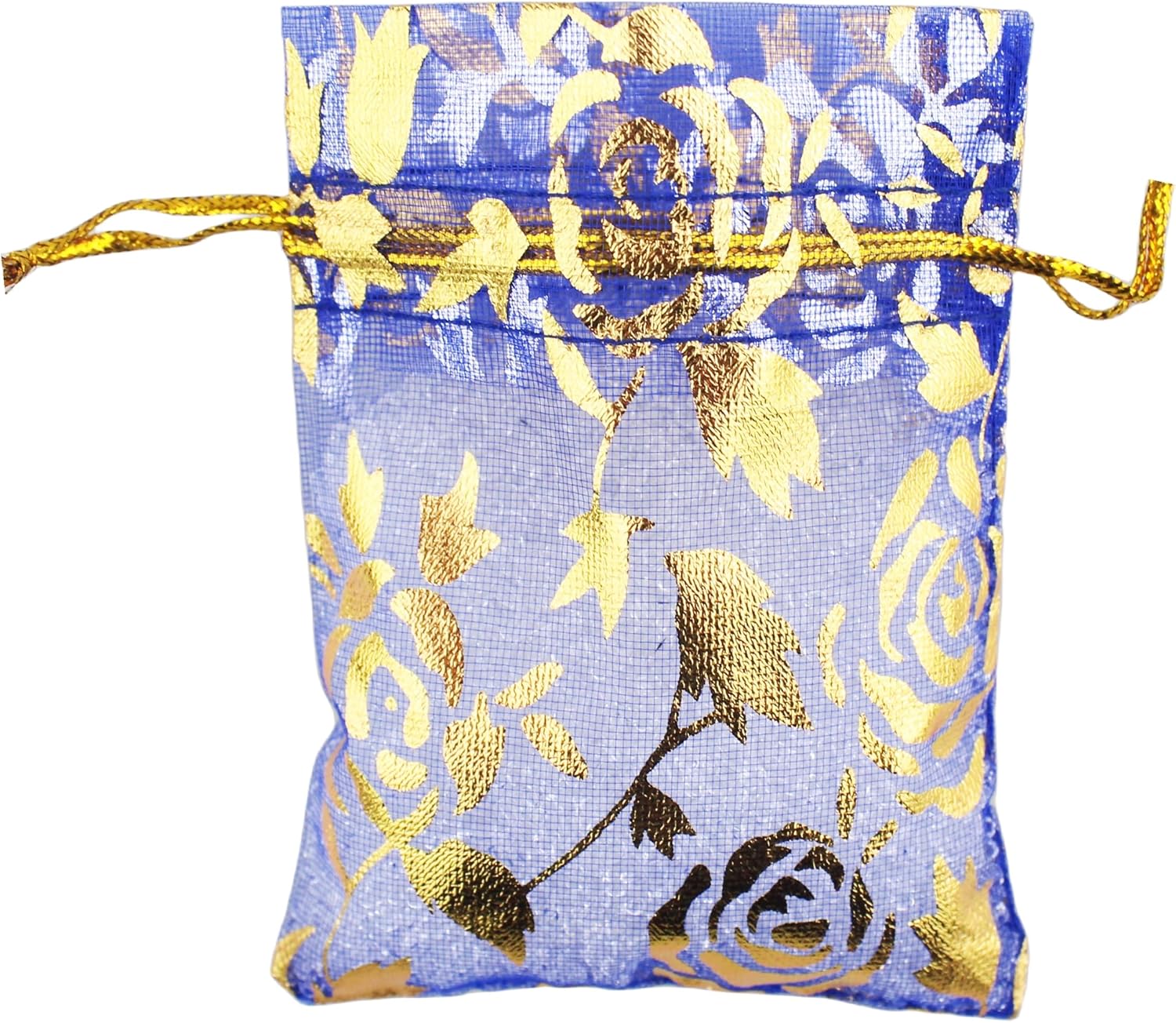 QIANHAILIZZ 100 Pack 2.8 x 3.5 Inch Flower Heart Organza Jewelry Gift Pouch Candy Pouch Drawstring Wedding Favor Bags B511S (royalblue gold flower)