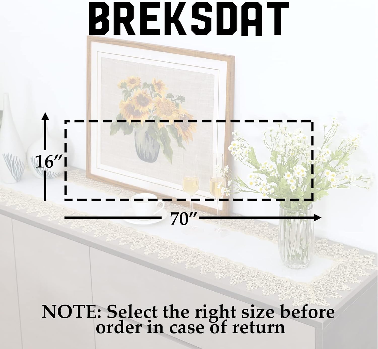 Beige lace Premium Rectangle Farmhouse Table Runner Waterproof OilProof SpillProof AntiShrink Soft Wrinkle Resistant Decorative Fabric Table Cover Kitchen Dinning Party Wedding Banquet