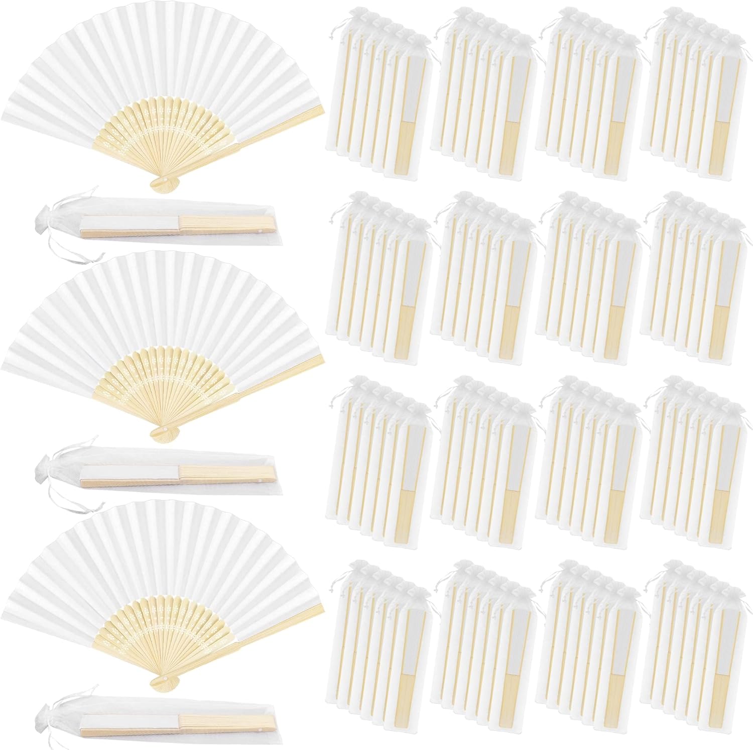 - Sufficient quantity: you will get 120 pieces of white paper fans, with each folding fan wrapping with a beautiful organza bag, the quantity definitely meets your every need; our bamboo folded hand fans can be used as small gifts at wedding, parties, and shopping mall events