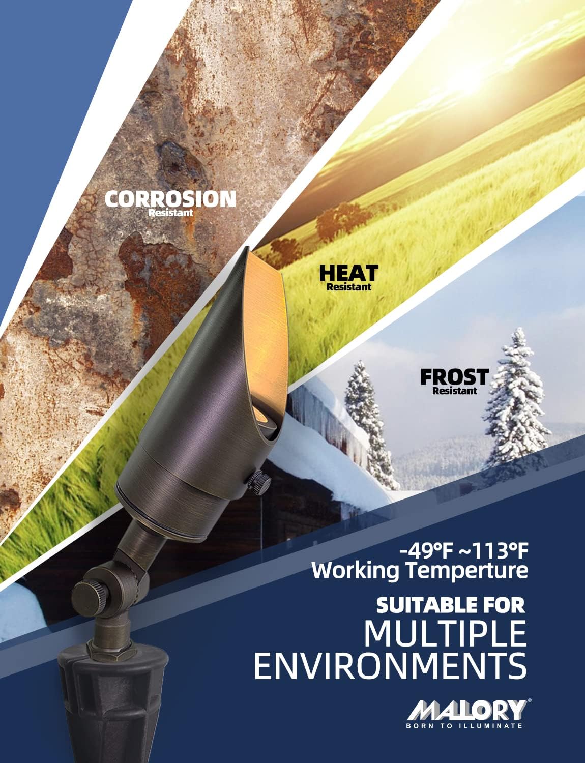 - LIFETIME WARRANTY:MALORY landscape lighting are built to the highest standards of construction and performance, we extends an industry-best lifetime warranty on its brass fixtures and 50,000 hrs for the LED bulbs.Please contact us if you have any issue, we will offer top rated customer service for you.