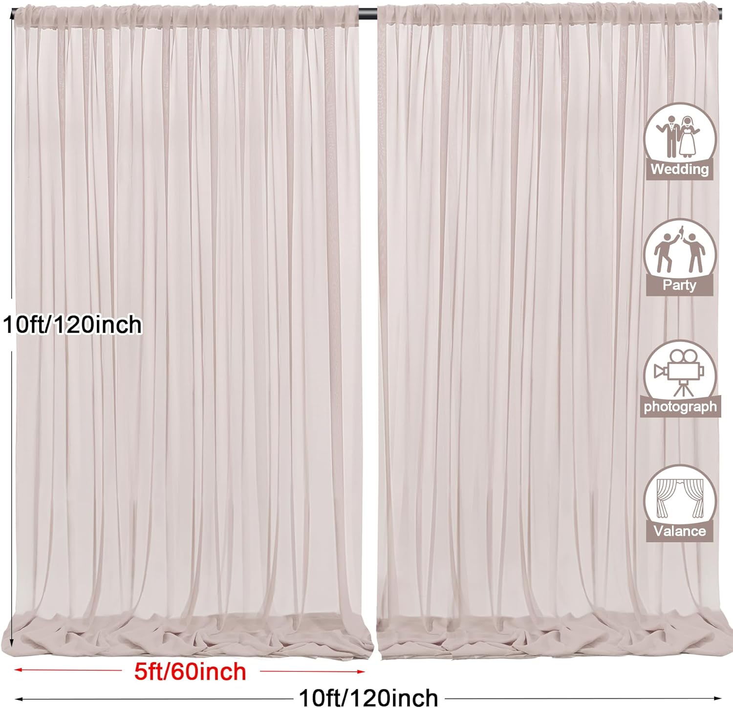 PARTISKY 10ftx10ft Taupe Chiffon Sheer Backdrop Curtains, Wrinkle-Free Wedding Backdrop Drapes for Birthday Party Ceremony Arch Stage Decor Background for Photography 5ft x 10ft,2 Panels