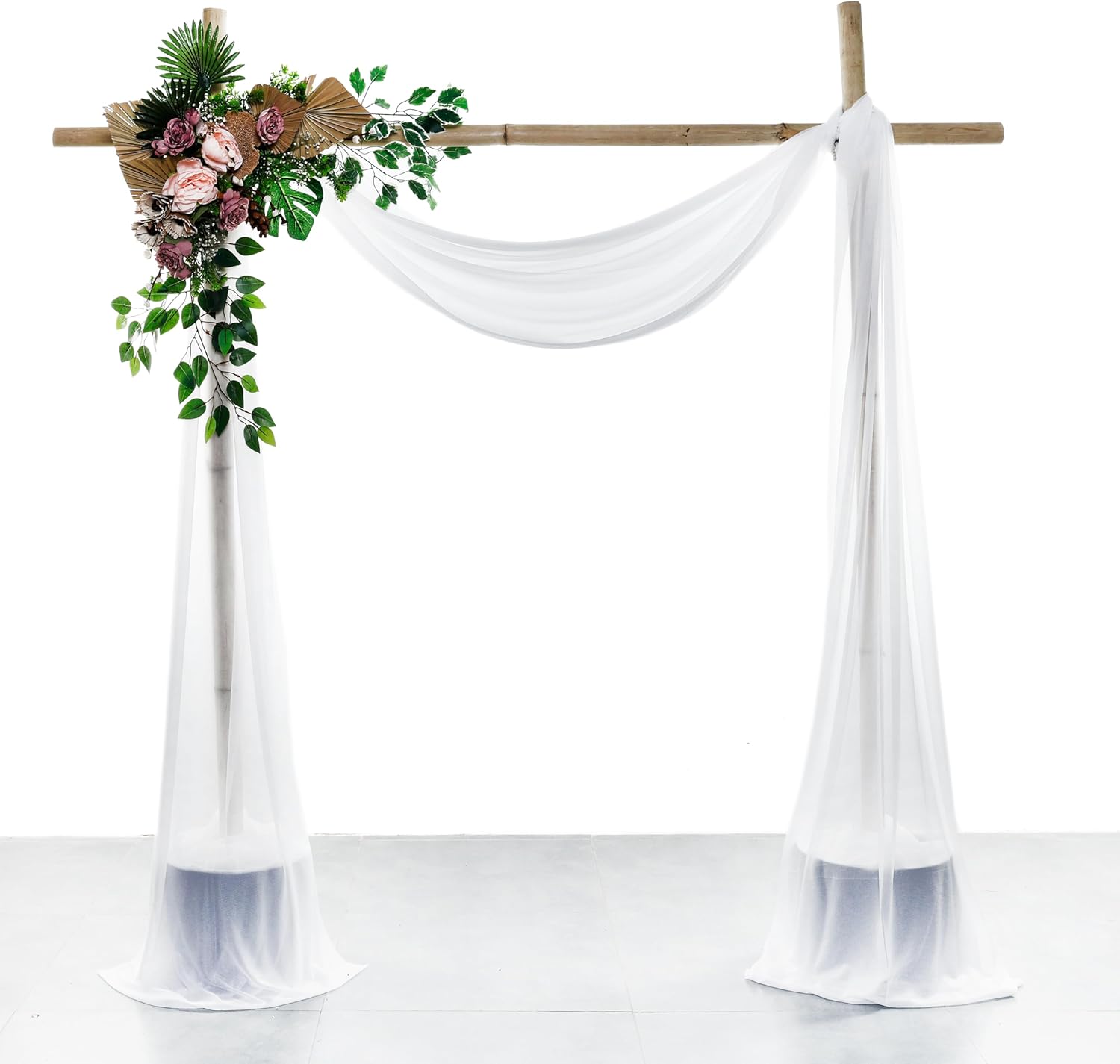 VDS Pack of 2 Panel (30 Inch X 30 Feet) Wedding Arch Draping Fabric Sheer Chiffon Fabric Drapery for Wedding Ceremony Reception Swag Backdrop Canopy Chuppah ARBO Altars Decoration (White)