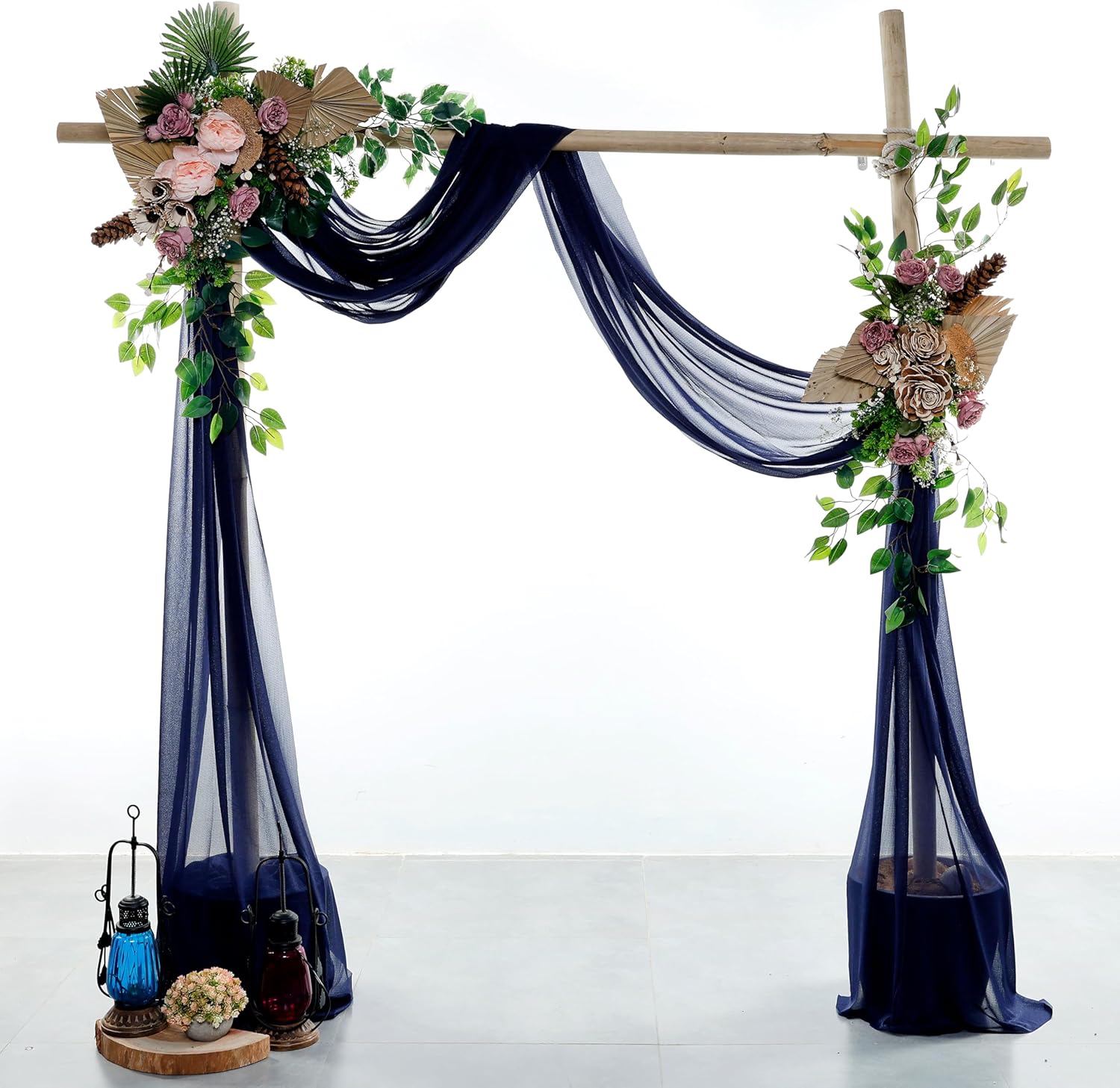 VDS Pack of 2 Panel (30 Inch X 30 Feet) Wedding Arch Draping Fabric Sheer Chiffon Fabric Drapery for Wedding Ceremony Reception Swag Backdrop Canopy Chuppah ARBO Altars Decoration (Navy Blue)